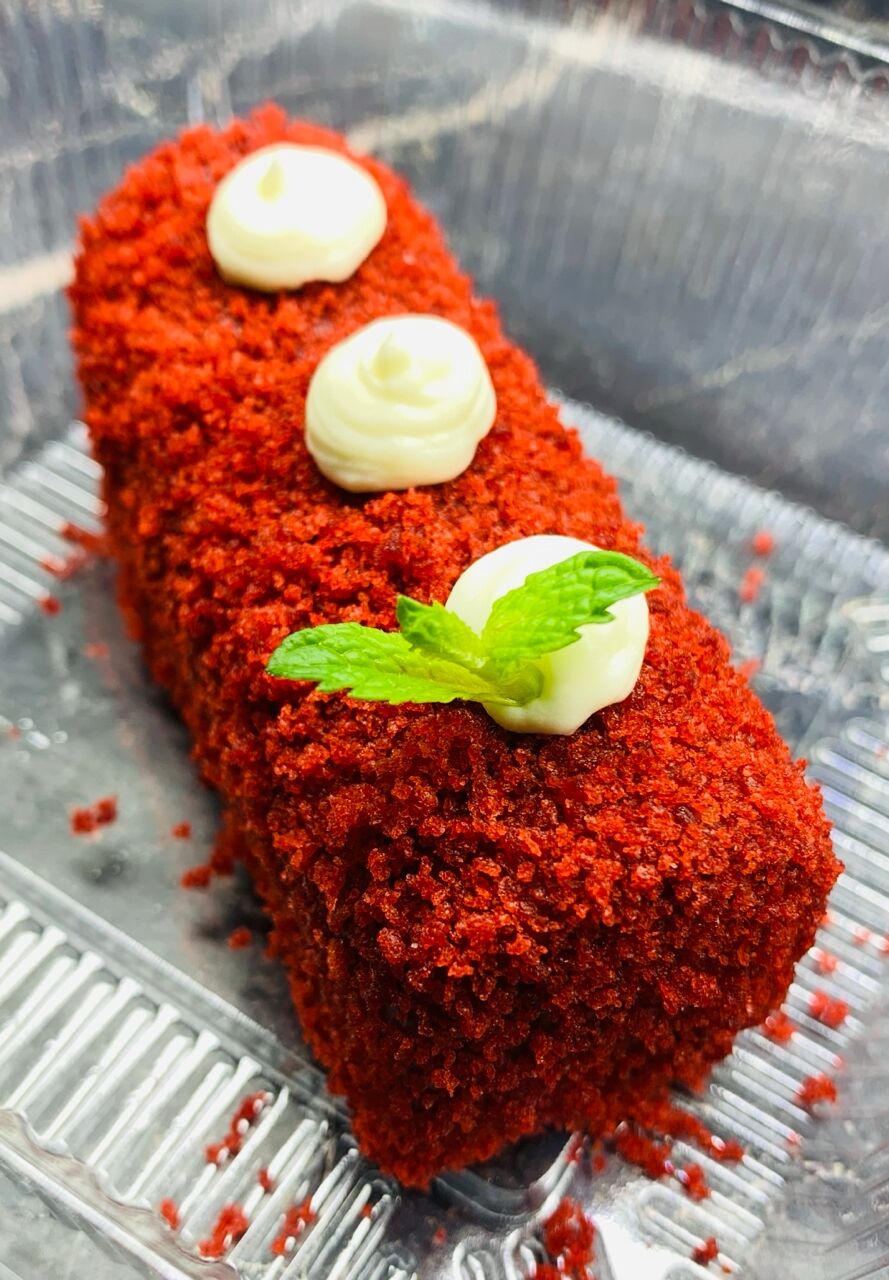 Состав: бисквит Красный бархат, вишня, масло сливочное, сыр творожный, сгущенка вареная, шоколад темный