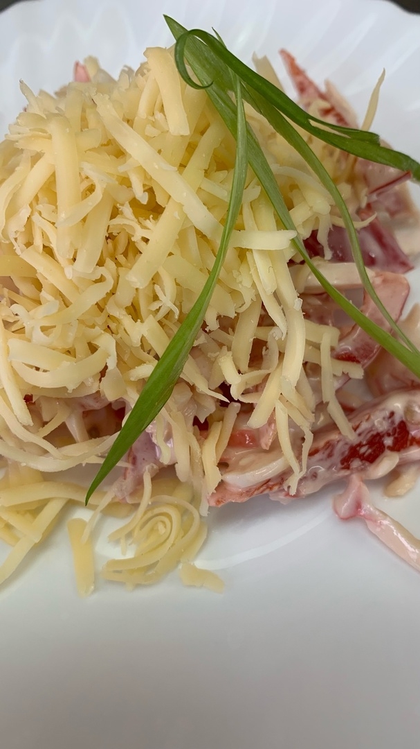 Состав: крабовые палочки, помидоры, перец болгарский, чеснок, сыр, майонез