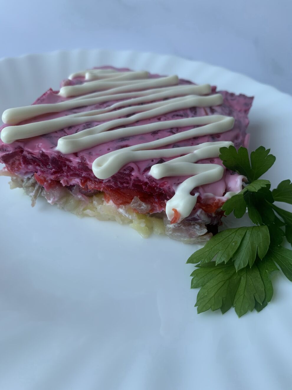 Состав: сельдь с/с, лук, картофель, яйцо, морковь, свекла, майонез